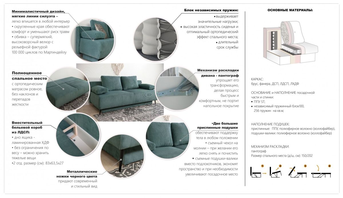 Легкий уход — съемные элементы и практичная велюровая обивка.