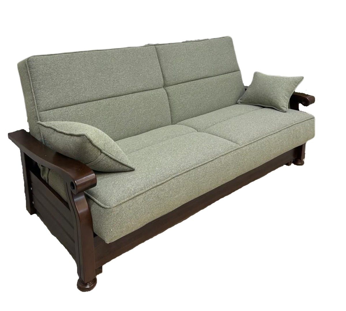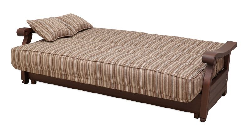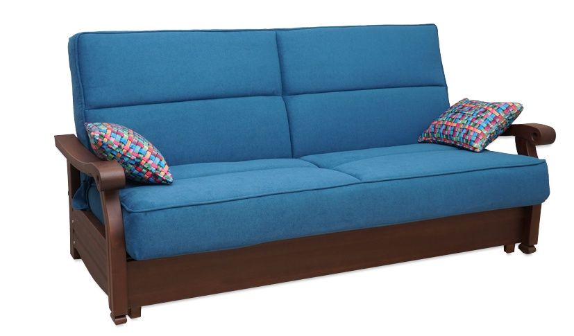 Прочный каркас из соснового бруса и металлической рамы рассчитан на многолетнюю активную эксплуатацию. Диван имеет среднюю жесткость, что оптимально для ежедневного использования.