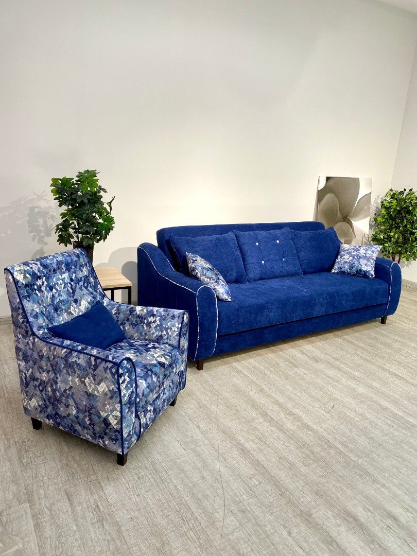 При раскладывании отодвигать от стены не нужно. Декоративный кант подчеркивает модели. Двухсторонние подушки разнообразят цвет .Дополним креслом