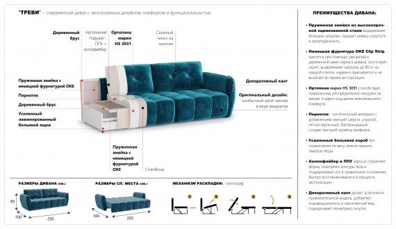 Практичность: механизм "тик-так" и бельевой короб делают диван функциональным.