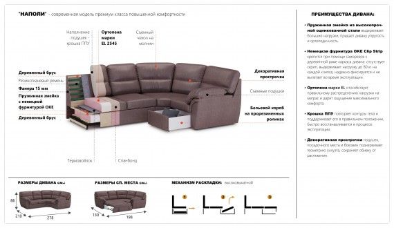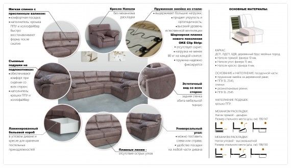 Модель "Наполи" - идеальное сочетание классических форм элитной мебели с современными технологиями и материалами. Форма дивана и кресел располагает к отдыху: эргономика спинки и боковин идеально продумана и способна обеспечить комфорт человеку любого роста и комплекции.