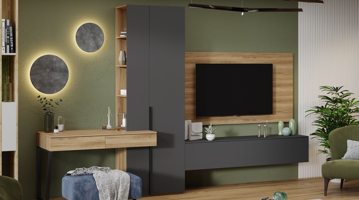 ✔ Просторная стенка (3 449×2 171×580 мм) — удобное хранение и декор