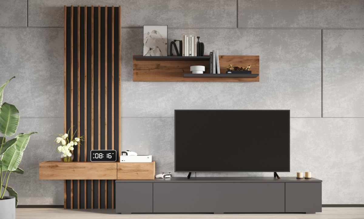 Ищете, где купить мебель для гостиной, которая сочетает функциональность и современный дизайн? Стенка «Риана» в цвете Вотан/антрацит — идеальное решение для создания гармоничного интерьера.