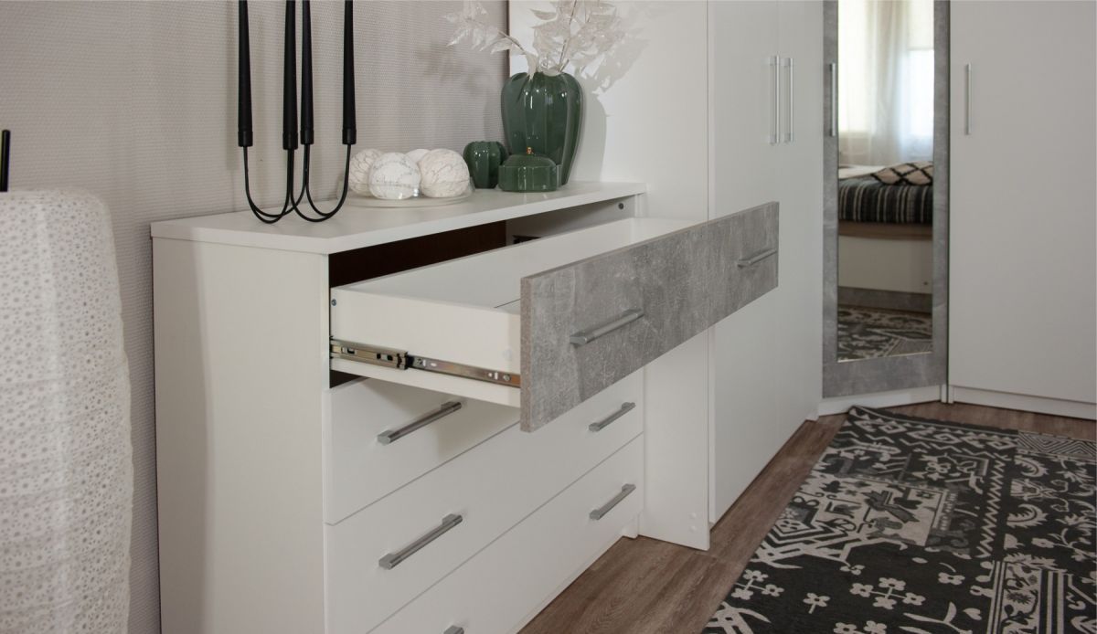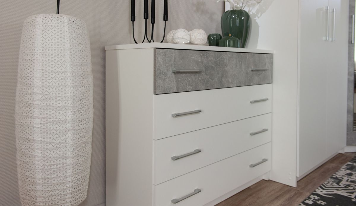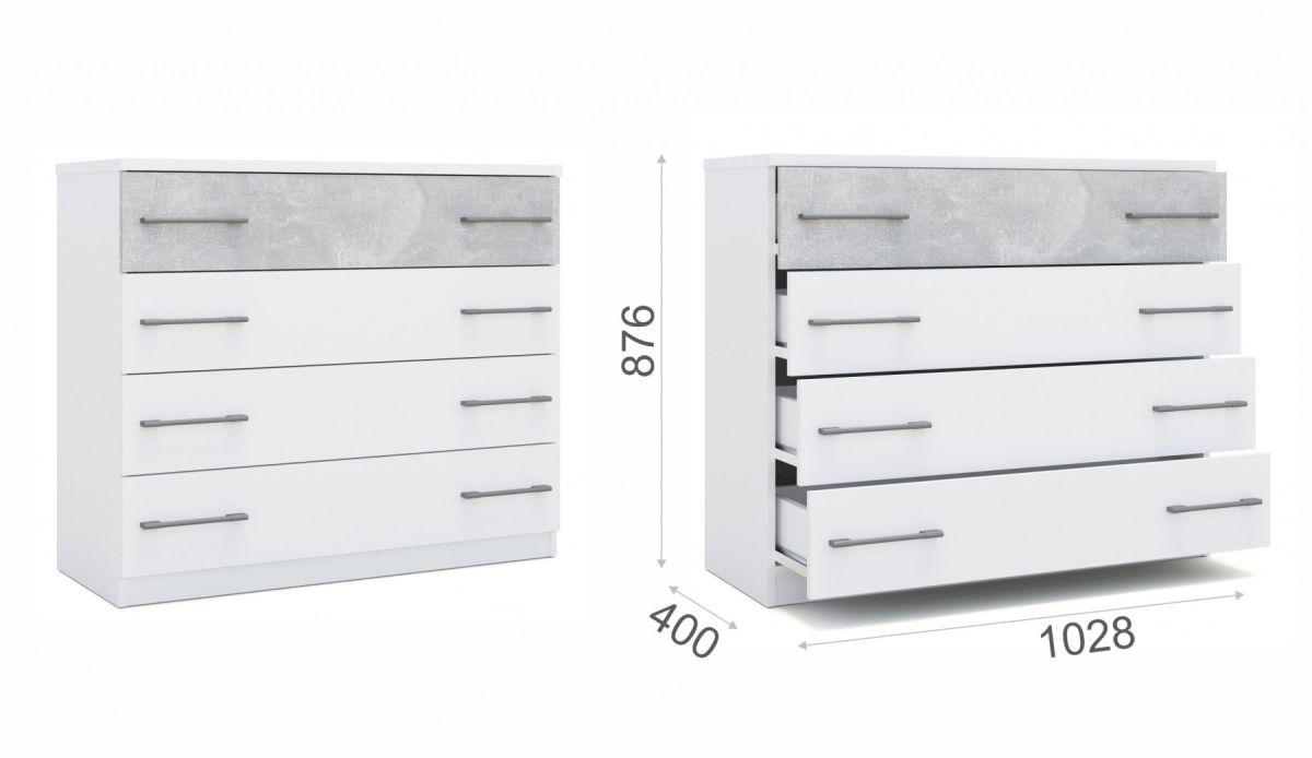 Комод «Аврора» 4ящ Белый/ателье светлый