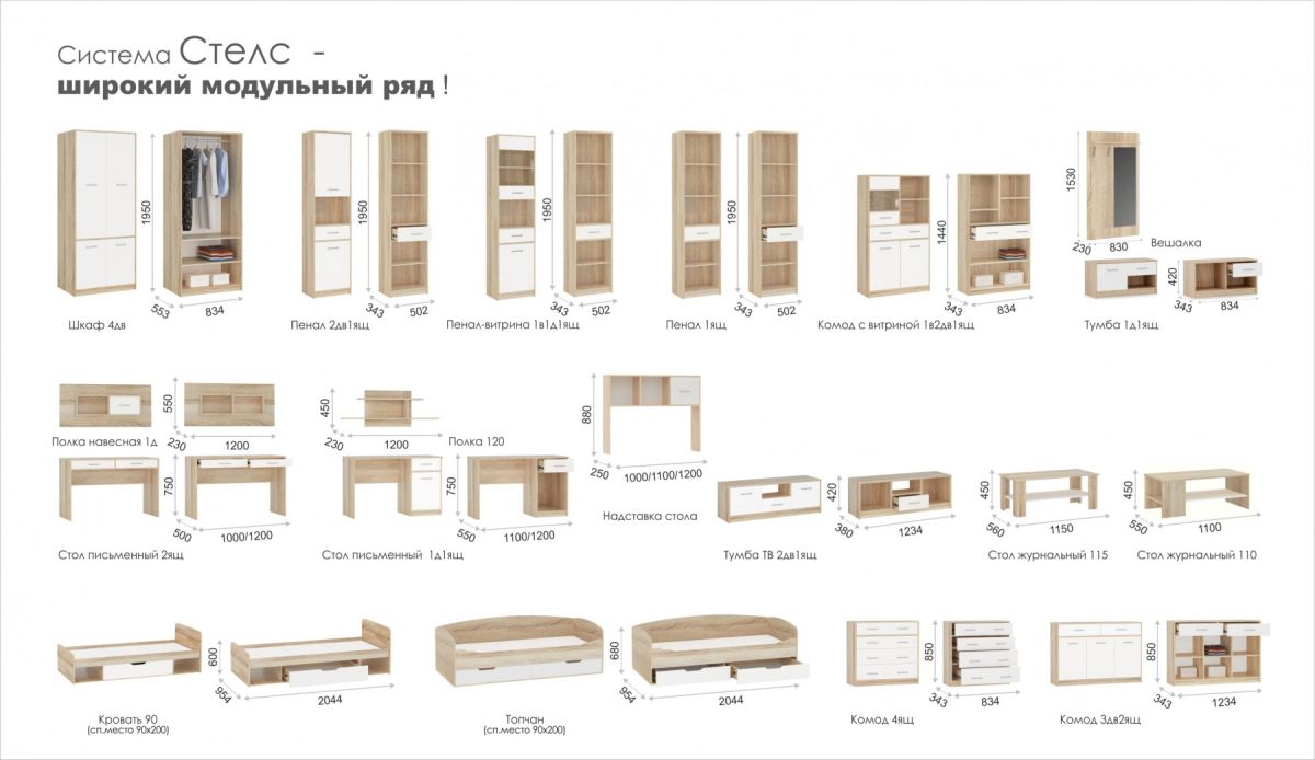 Комод Стелс - функциональное дополнение интерьера, подходит для размещения в гостиных, детских и спальнях для хранения белья, одежды и текстиля. Главное преимущество - наличие выдвижных ящиков с телескопическими направляющими полного выдвижения - вещи, лежащие в дальнем углу, становятся легкодоступными. Верхнюю крышку можно использовать для декора или фотографий. Идеально компонуется со всеми модулями системы Стелс. Мебель выполнена из высококачественных экологичных материалов.
