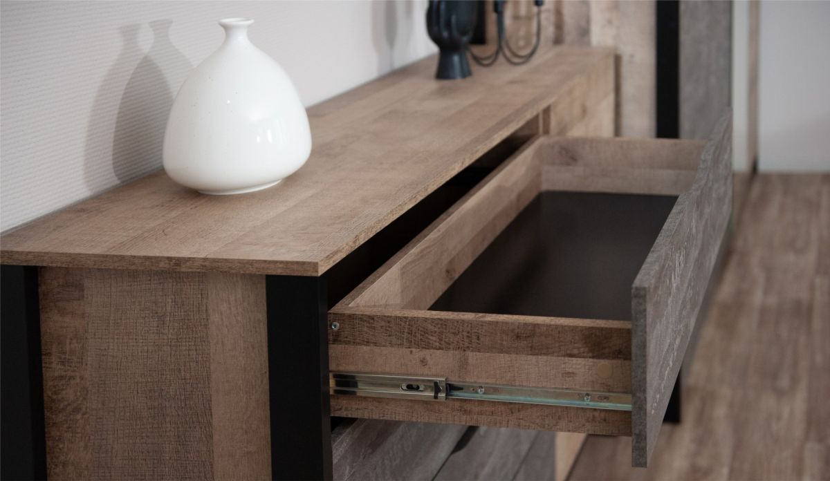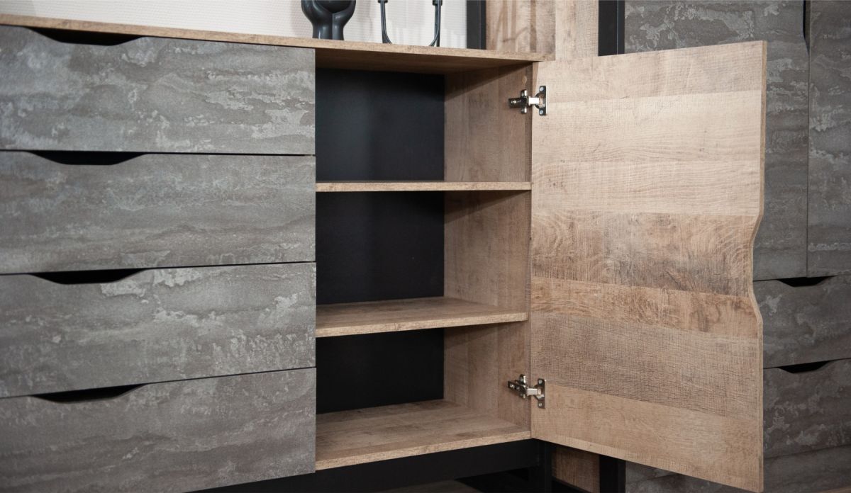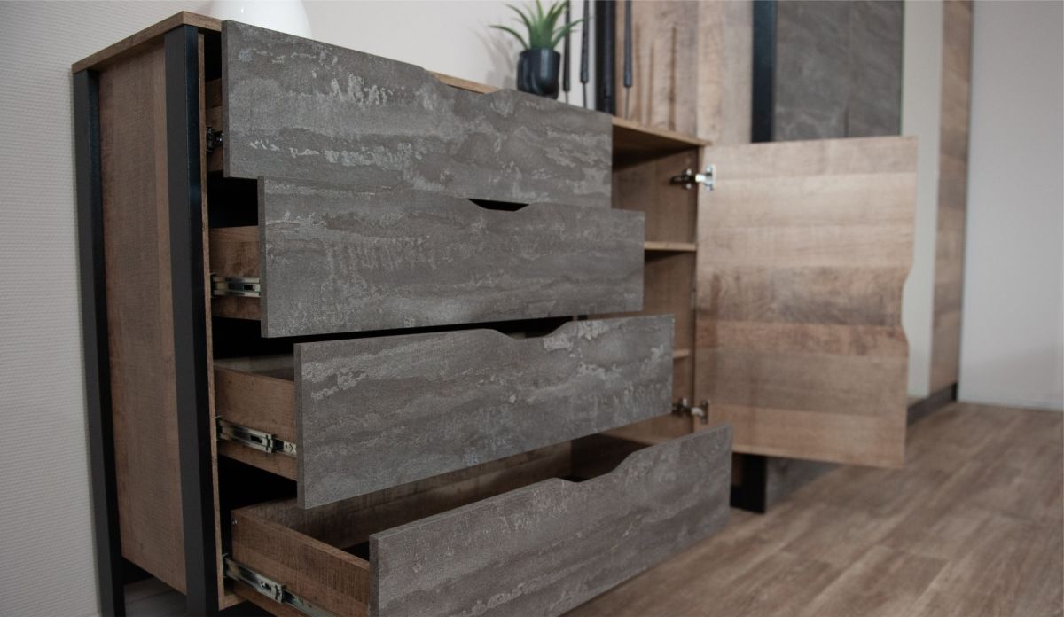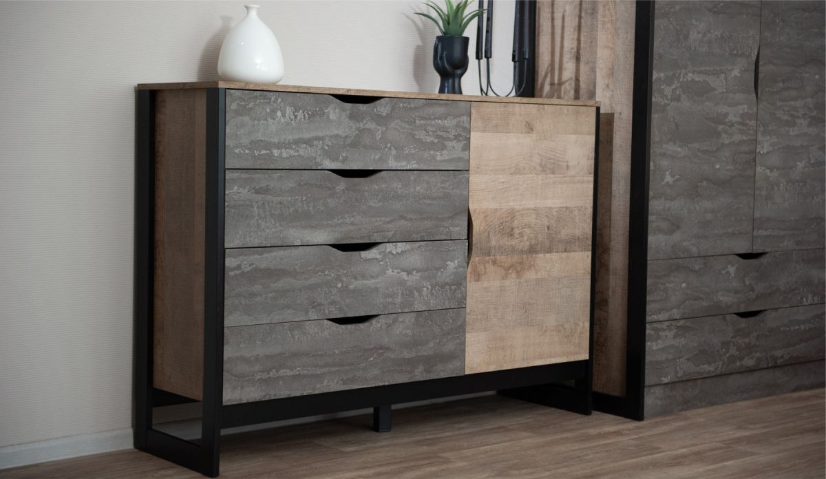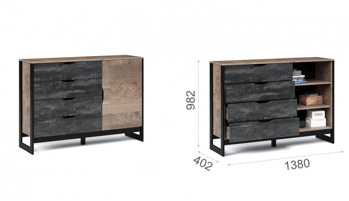 Комод «Стокгольм» 1д. 4ящ. Дуб гранж песочный/железный камень