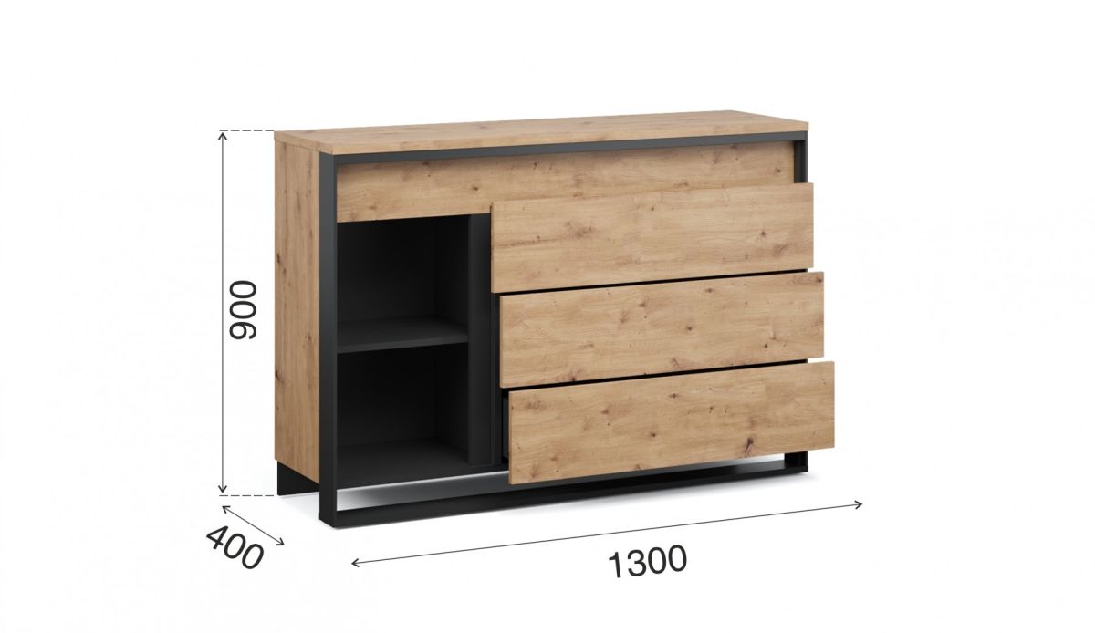Комод «Тринити» 1 д. 3 ящ. Дуб Онтарио/Черный