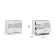 Комод оснащен двумя ящиками на телескопических направляющих, что позволяет рационально использовать все внутреннее пространство и обеспечивает легкий доступ ко всему содержимому. Дополнительная полка внутри комода позволяет хранить вещи более организованно. Купить комод с такими функциями — значит обеспечить себе комфорт и порядок в доме.