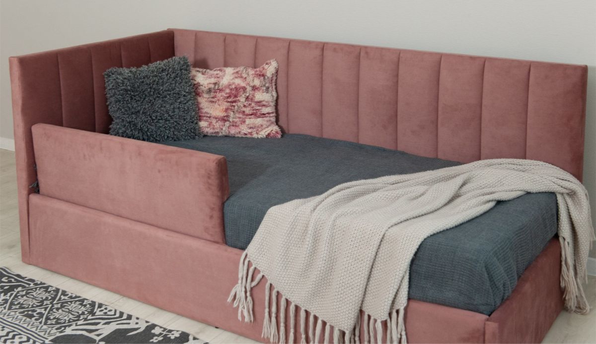Сглаженные углы, мягкие боковины и корпус обеспечивают безопасность, исключая возможность получить травму. Спальное место на ортопедических ламелях установлено на цельносварном металлическом основании. Благодаря подъёмному механизму, кровать легко откидывается, открывая доступ к бельевому ящику.