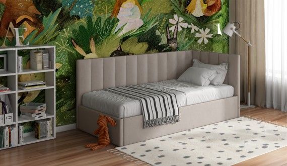 Мягкая кровать в минималистичном стиле идеально подойдёт для детской или подростковой комнаты. Её дизайн подчёркивает геометричность модели благодаря вертикальной прострочке с углублениями по периметру спинки и изголовья. Это создаёт атмосферу уюта и способствует спокойному отдыху.