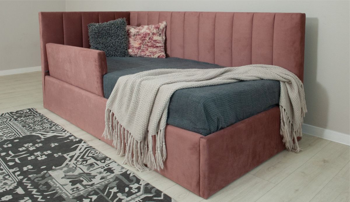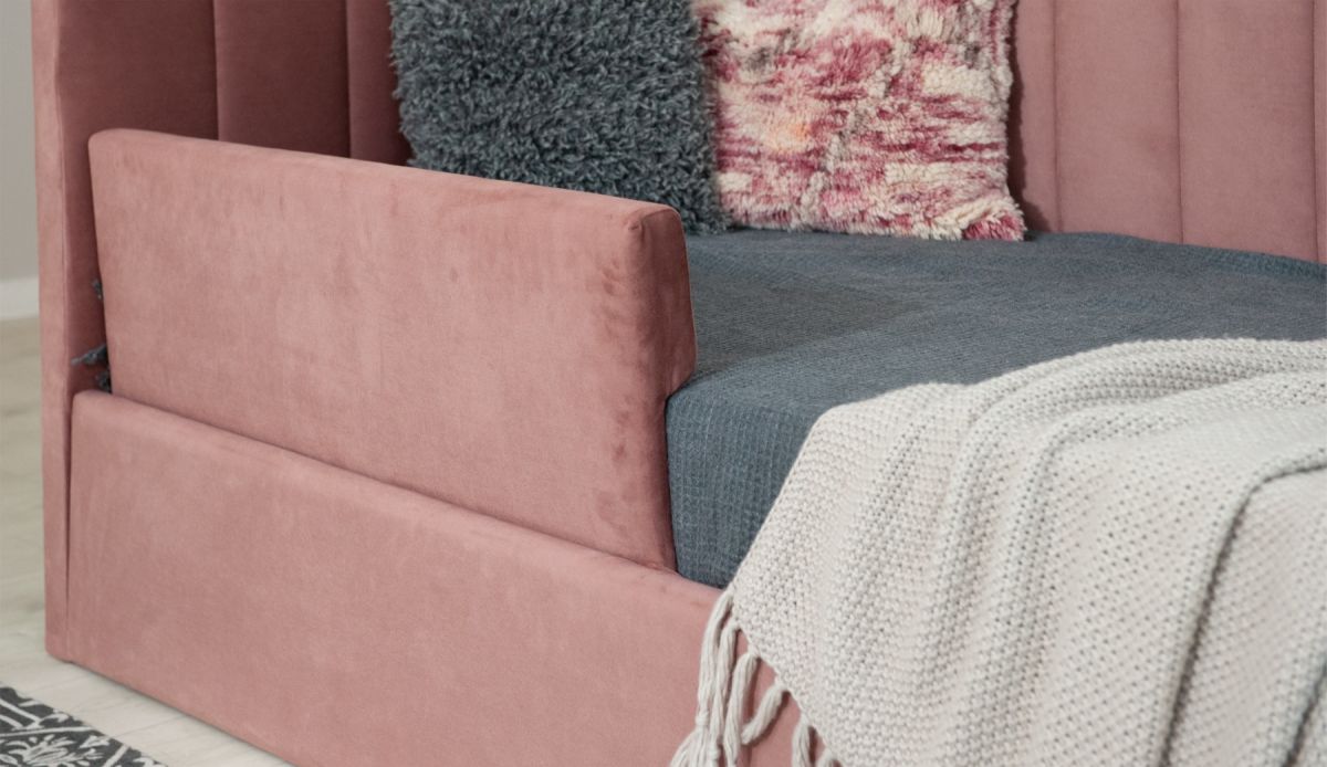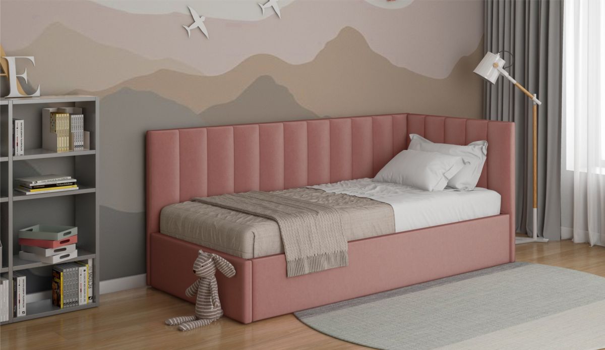 В детскую или подростковую комнату отлично впишется мягкая кровать в минималистичном стиле. Вертикальная прострочка с углублениями по периметру спинки и изголовья подчёркивает геометричность модели, создавая уютную атмосферу и настраивая на спокойный отдых.
