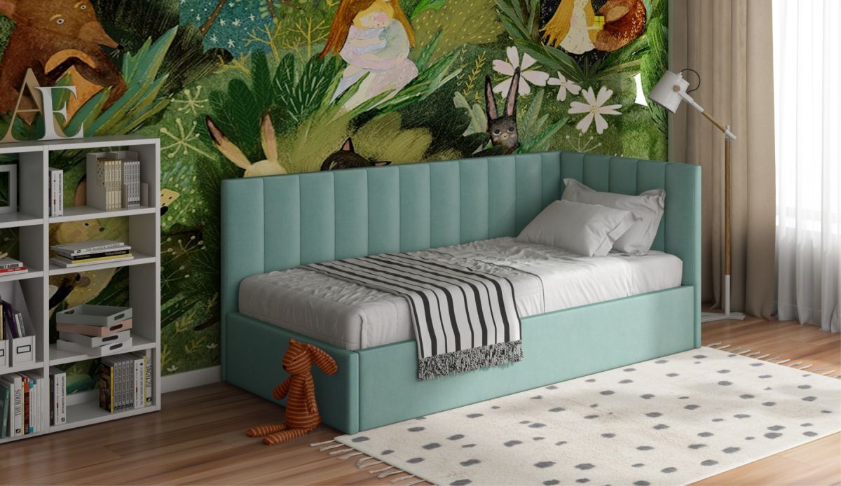 Мягкая кровать в минималистичном стиле идеально впишется в интерьер детской или подростковой комнаты.