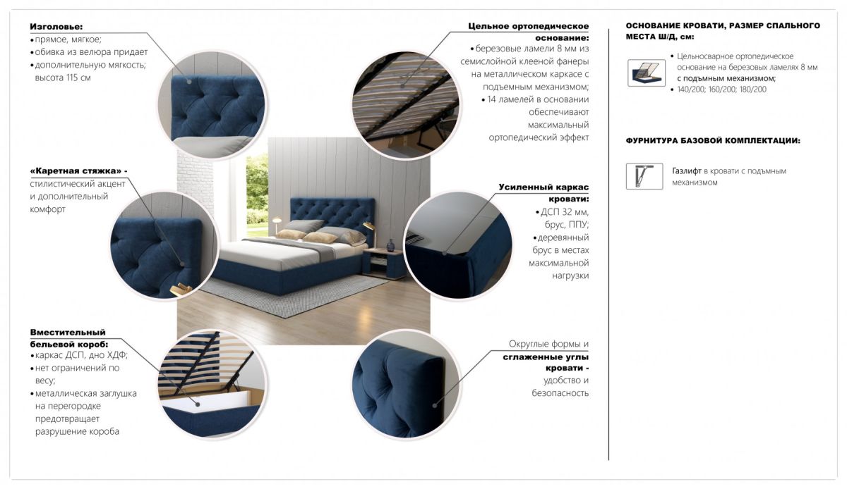 Кровать "Бетти" — это воплощение элегантности и уюта, созданное для ценителей изысканного интерьера. Ее главная особенность — роскошное изголовье с каретной стяжкой, которое станет стильным акцентом вашей спальни.