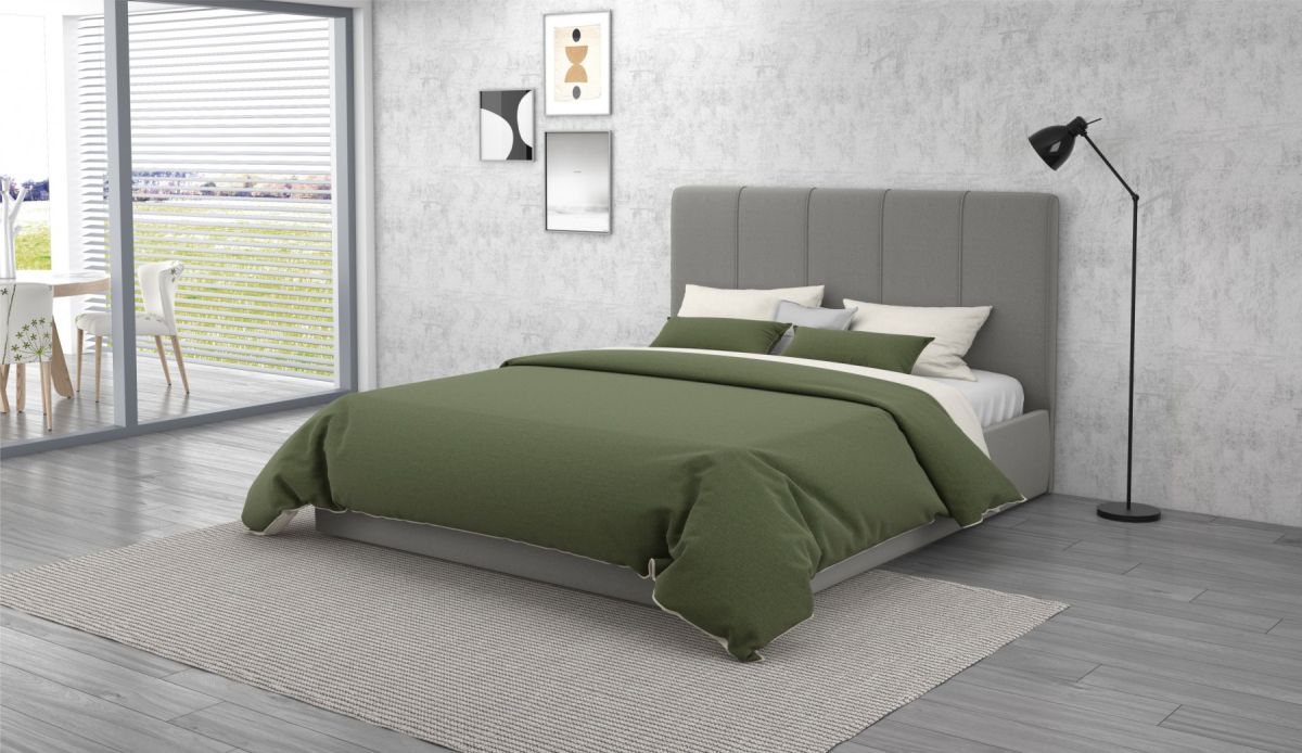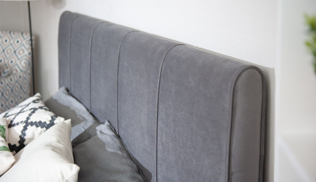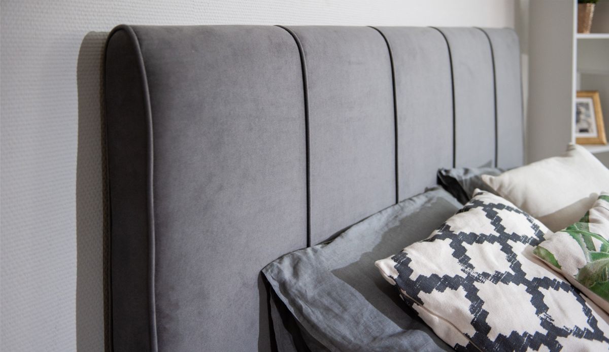 Высокое мягкое изголовье с вертикальными кантами создает уютную атмосферу