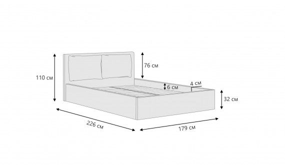 Каркас с толщиной боковых стенок 32 мм усилен деревянным брусом в зонах повышенной нагрузки. Все детали обтянуты мягкой обивкой, что гарантирует долговечность.