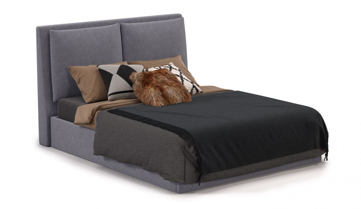Велюровая ткань с меланжевым эффектом создает благородную игру оттенков, подчеркивая элегантность и индивидуальность кровати.