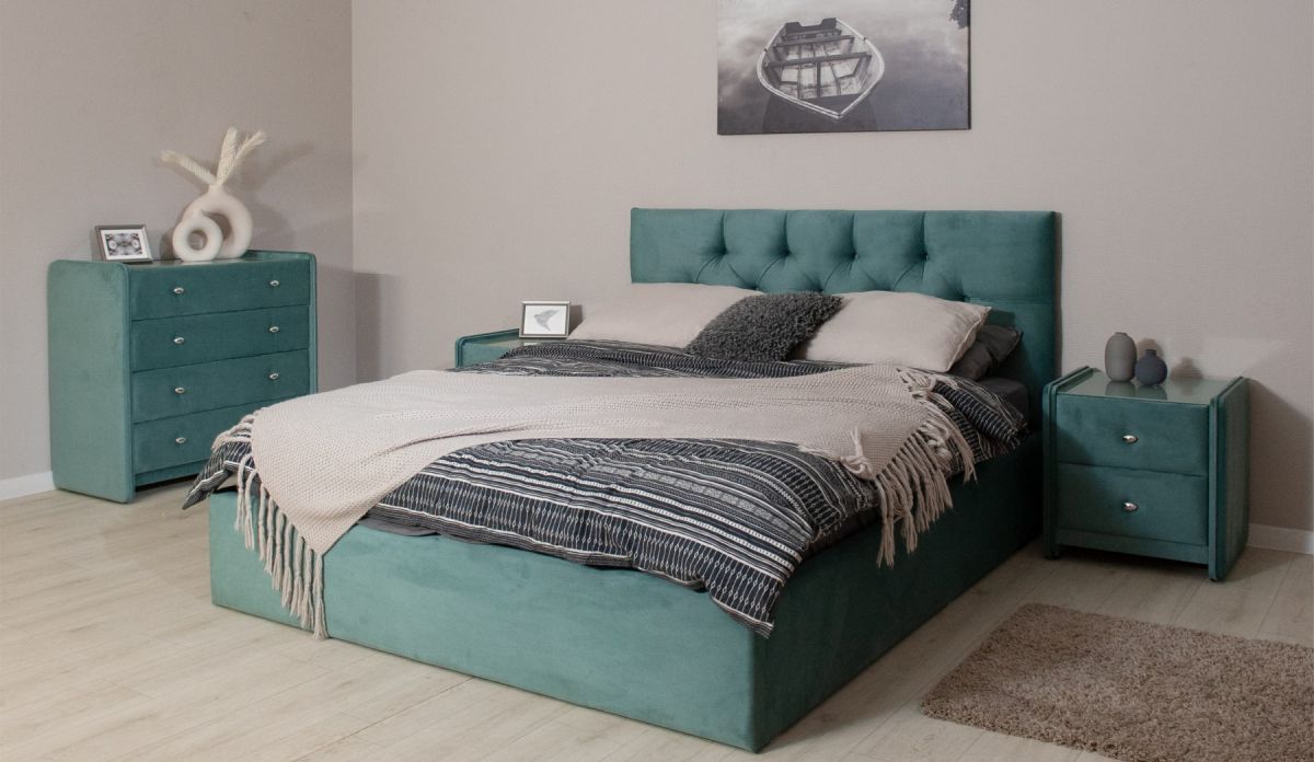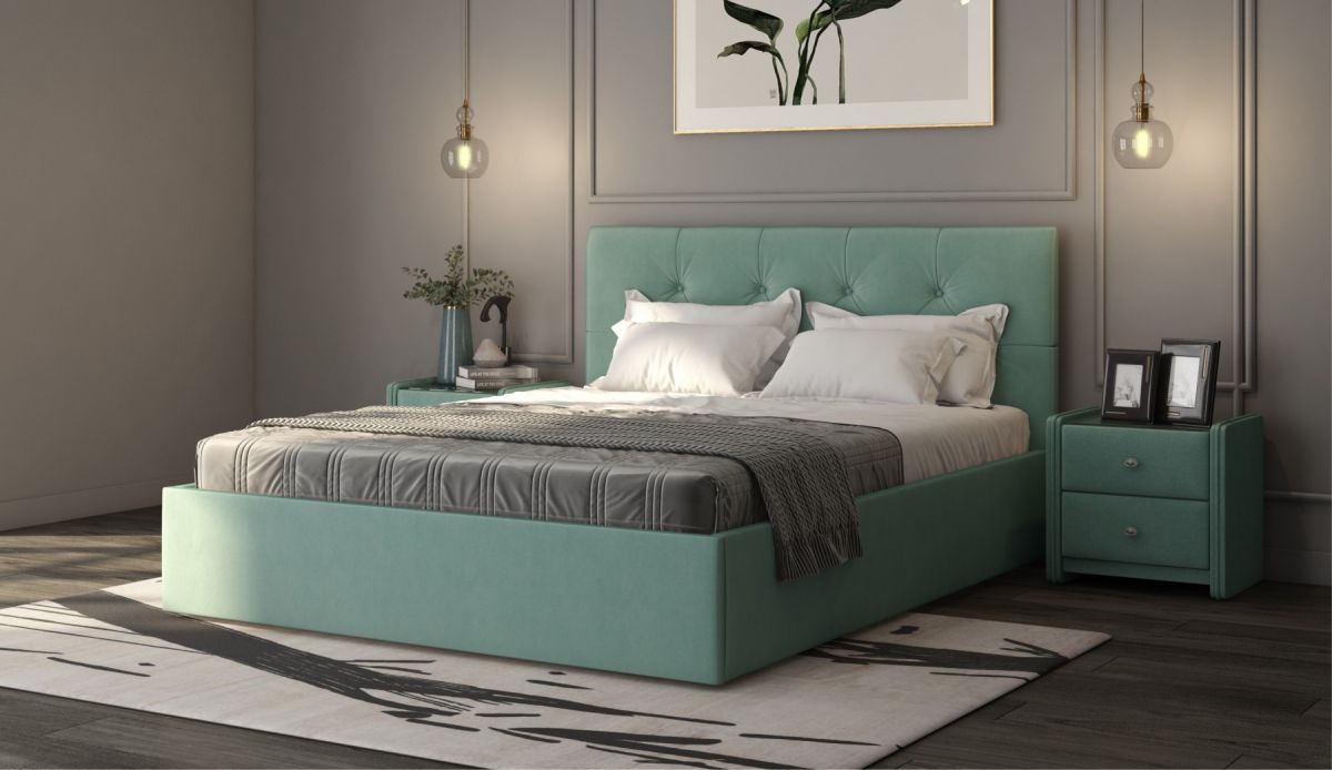 Кровать «Женева» 160х200 Bingo mint c пуговицами (подъемник)