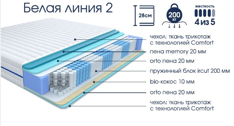 Ищете надежный матрас средней жесткости с отличной поддержкой позвоночника? «Белая Линия 2» – это идеальный выбор для тех, кто ценит комфорт и заботится о здоровом сне.