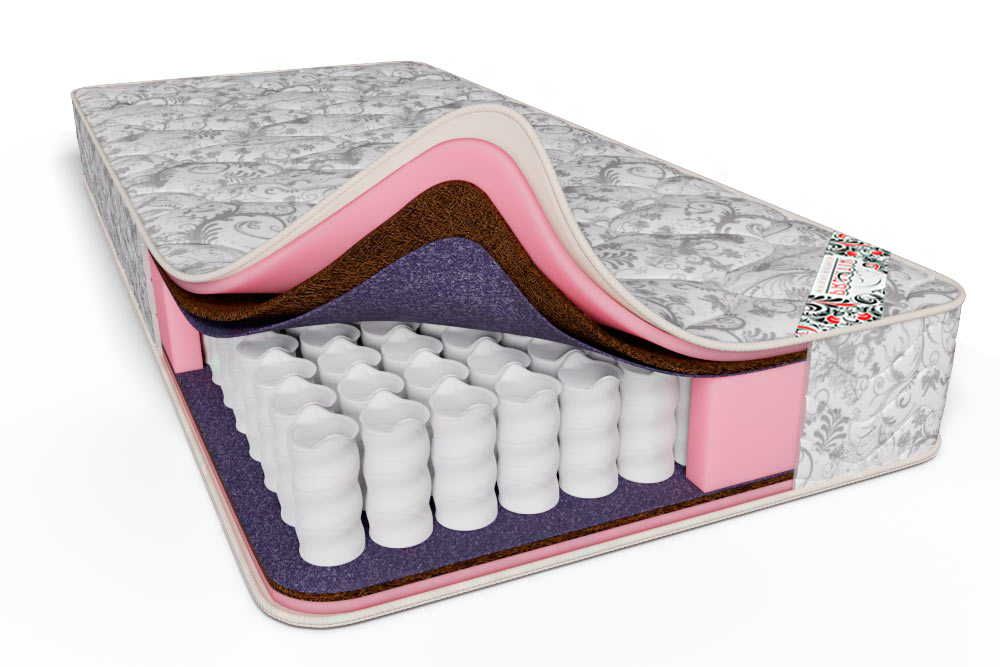 Кокосовое волокно придаёт матрасу жёсткость, предотвращая эффект качания. Пенополиуретановый короб защищает пружинный блок от внешних воздействий, сохраняя его форму на протяжении всего срока службы.