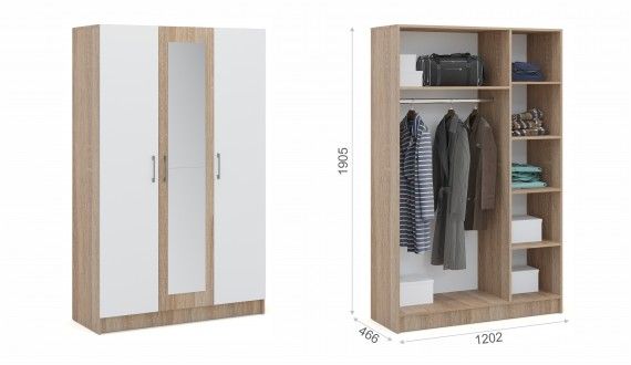 Шкаф «Алена» 3дв с зеркалами Дуб сонома/белый