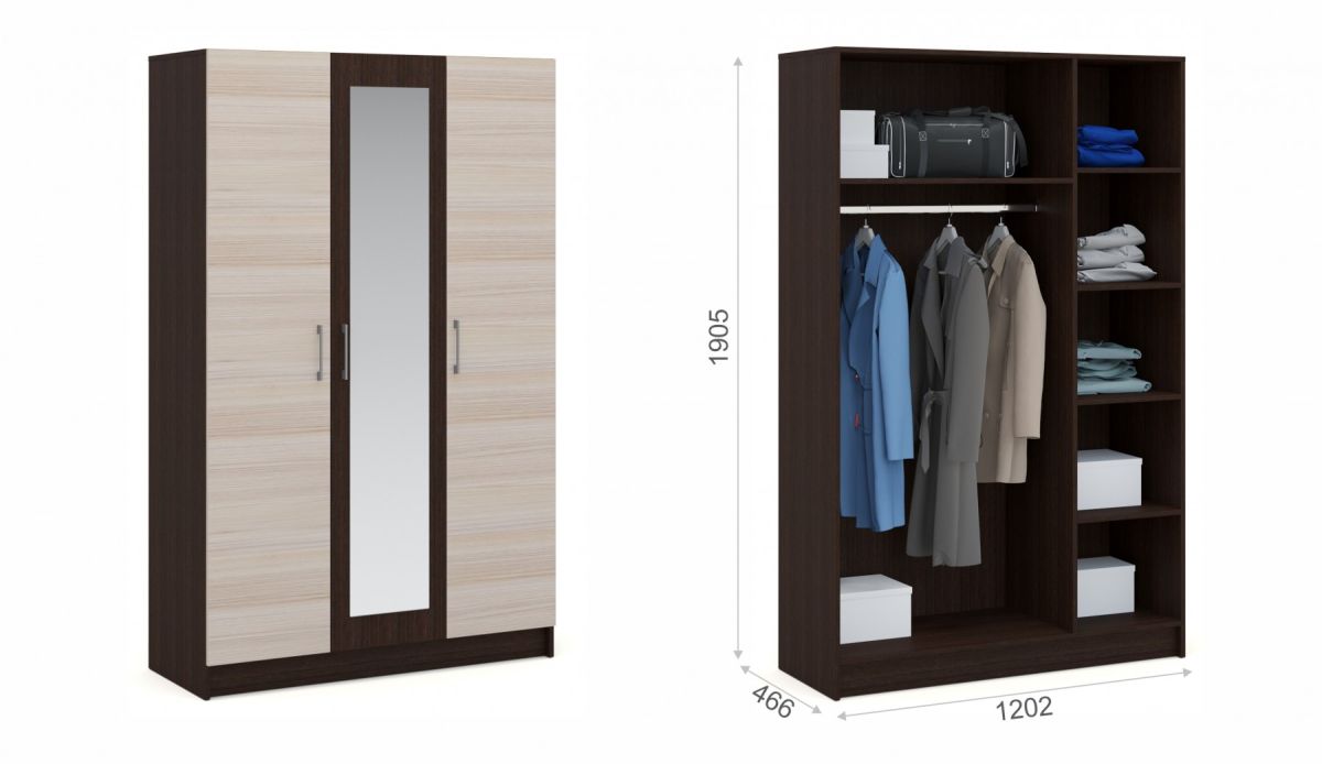 Шкаф «Алена» 3дв с зеркалами Венге/дуб молочный