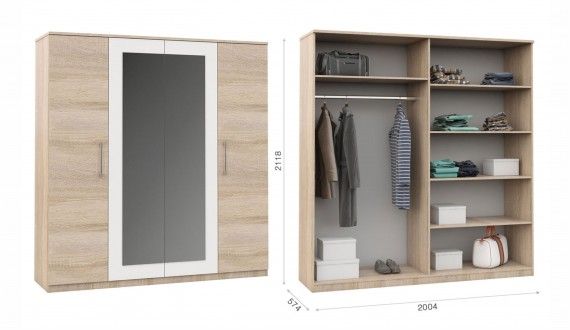 Классический распашной четырехдверный шкаф выполнен в стиле минимализм: строгие линии, идеальные пропорции. Нейтральные цвета шкафа подойдут для любого стиля интерьера, их можно сочетать со множеством ярких и насыщенных оттенков тем самым полностью преображая пространство. Зеркала на центральных фасадах сделают спальню светлее и просторнее. Идеально компонуется со всеми модулями системы Аврора. Мебель выполнена из высококачественных материалов.