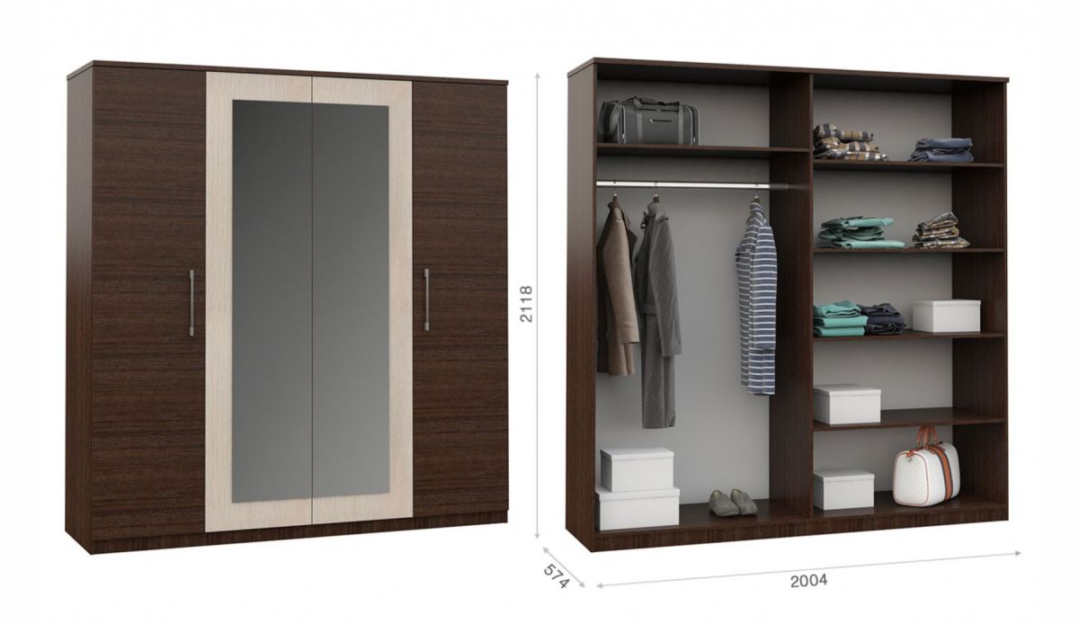 Шкаф «Аврора» 4дв Венге/дуб молочный