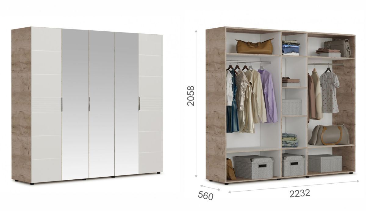 ▸ Количество дверей: 5 (3 с зеркалами)