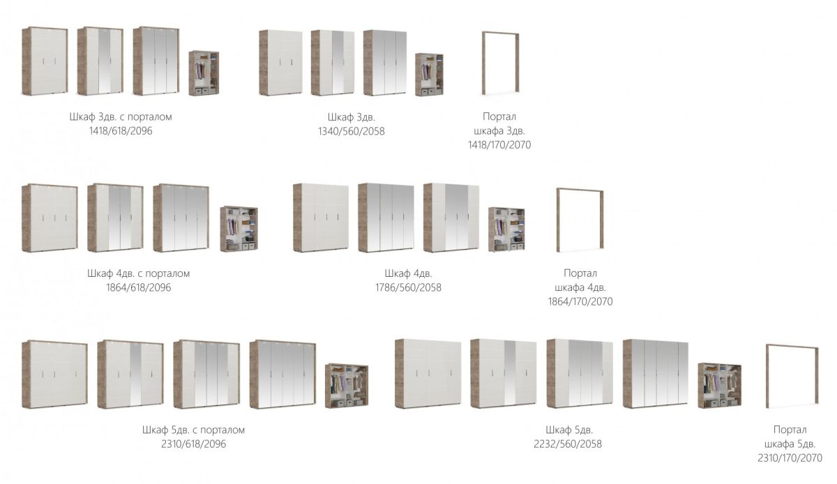 Шкаф «Джулия» 5дв с 3 зеркалами Крафт серый/белый глянец
