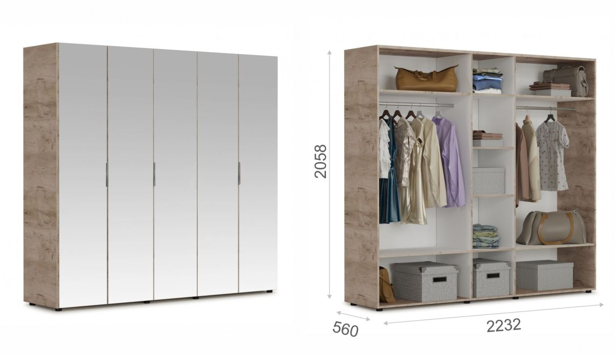 Шкаф «Джулия» 5-дверный с зеркалами — это не просто мебель, а продуманная система хранения, которая сделает вашу жизнь удобнее и стильнее!