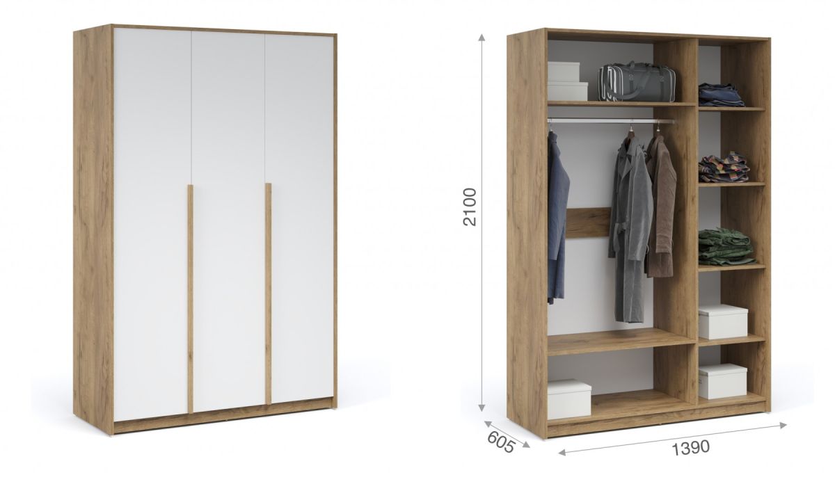 Шкаф «Мишель» 3дв Крафт золотой/белый жемчуг