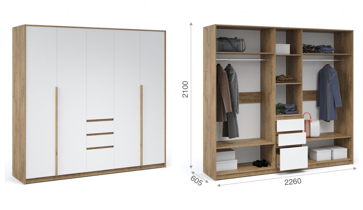 Шкаф «Мишель» 5дв Крафт золотой/белый жемчуг