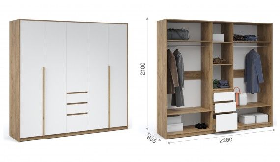 Функциональный распашной щкаф с массивными ручками контрастного цвета включает в себя вместительные полки и отделения со штангой, что позволяет создать систему для хранения вещей различного назначения. Встраиваемая в портал LED подсветка – оригинальное дизайнерское решение и дополнительный источник освещения. Современные цвета декора корпуса и белоснежный фасад добавят в жилое помещение света, уюта и комфорта. Идеально компонуется со всеми модулями системы Мишель.