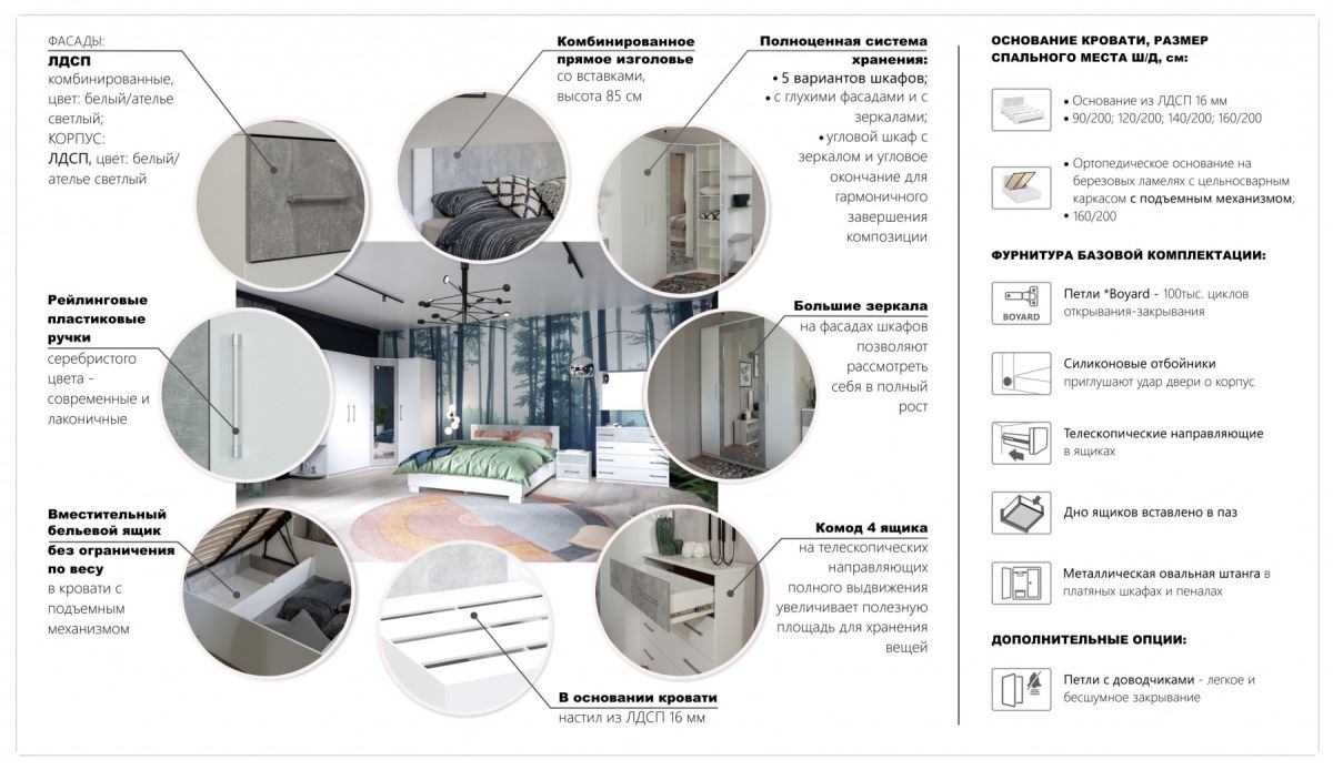 Спальный гарнитур «Аврора» Белый/ателье светлый