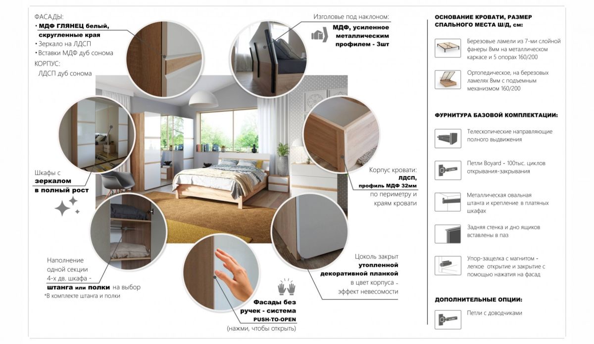 Спальный гарнитур «Дакота» Сонома/белый глянец