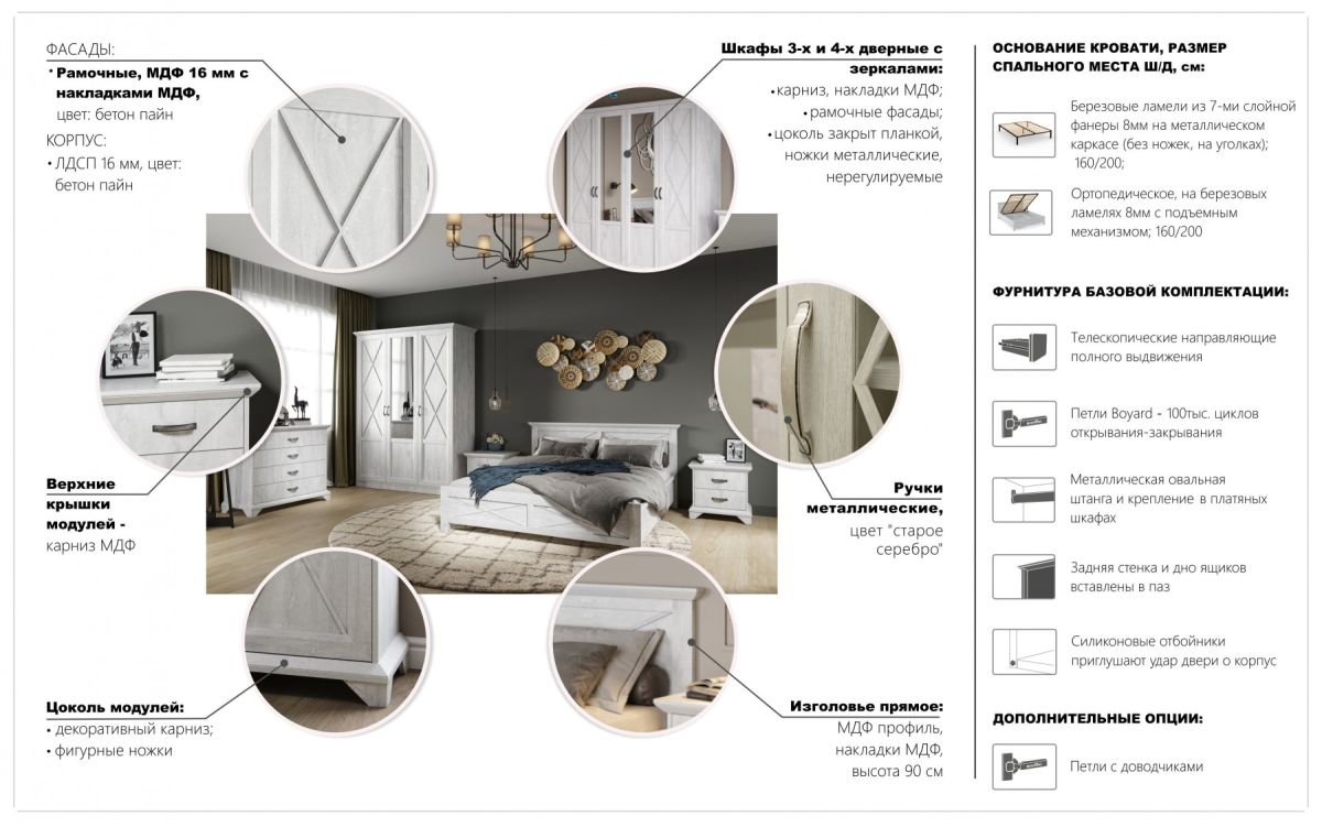 Спальный гарнитур «Лорена» Бетон пайн белый