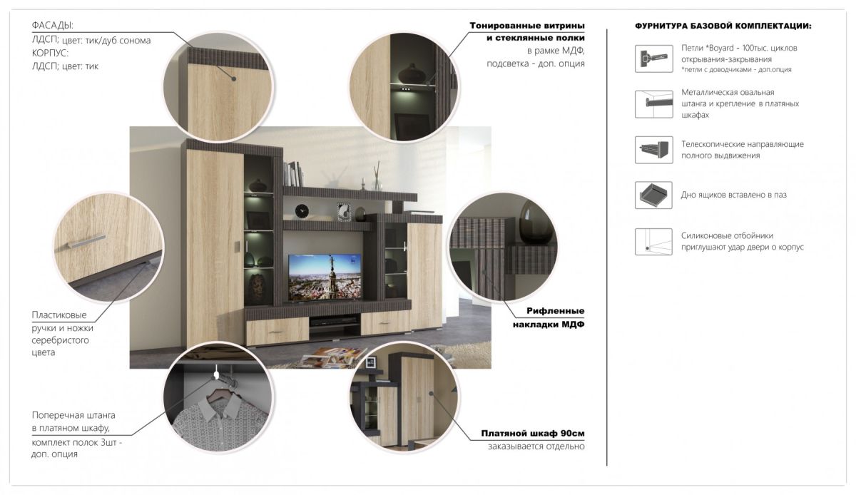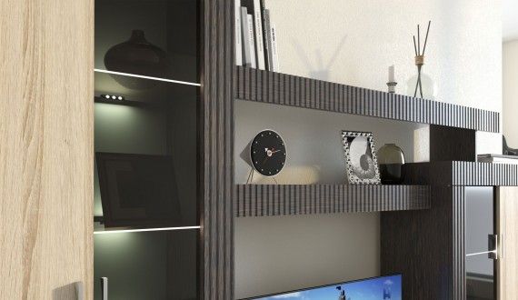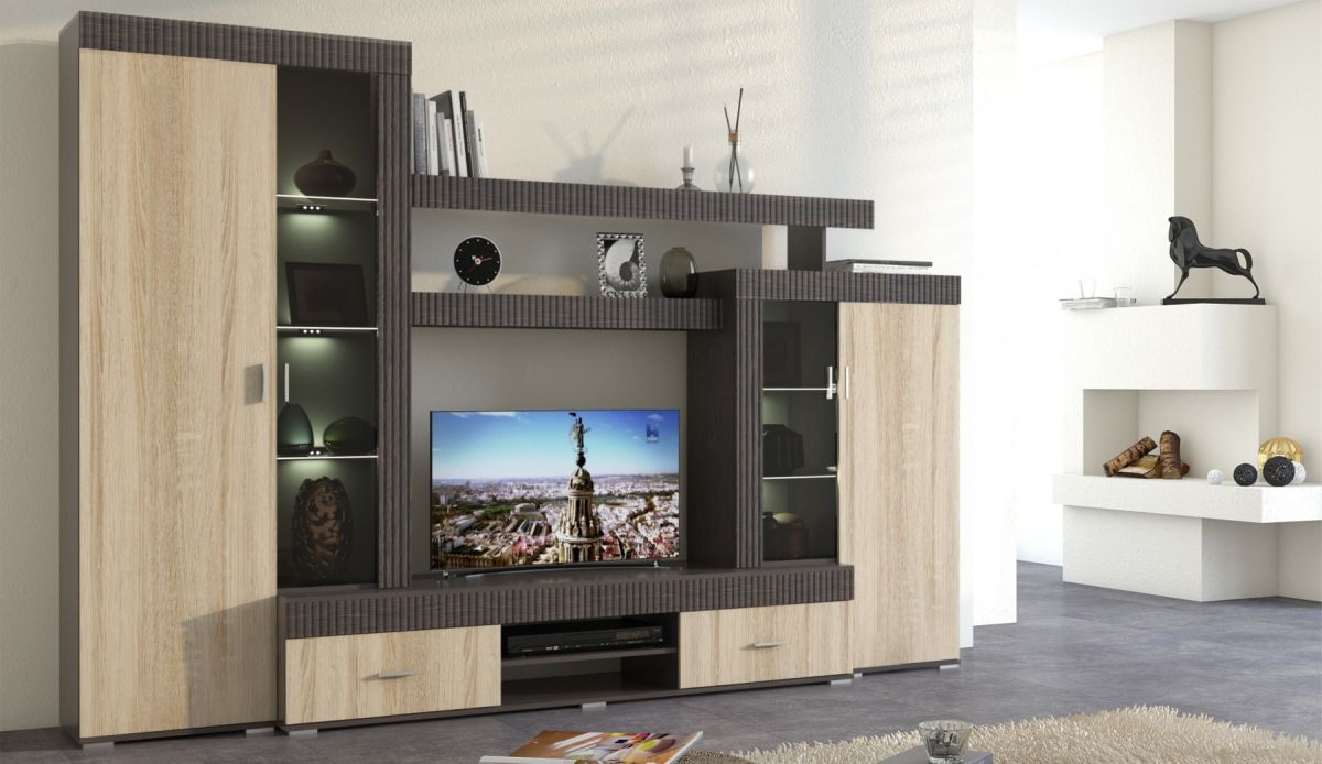 Марк - это готовое решение для гостиной и спальни в современном европейском стиле.Благодаря тщательно продуманной конструкции и правильному подбору цветов, позволяет создать уютную и теплую обстановку для отдыха и содержания дома в порядке.Отличительные особенности: утолщенные линии из рельефного МДФ, тонированные витрины со стеклянными полками, множество места для хранения при небольших размерах.Дополнительно комплектуется светодиодной подсветкой, платяным шкафом и журнальным столиком."