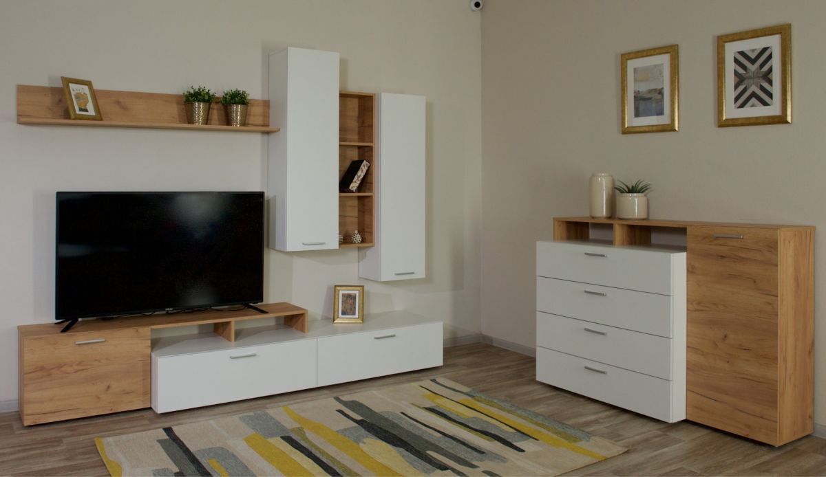 Стенка «Невио-1» Дуб крафт золотой/белый