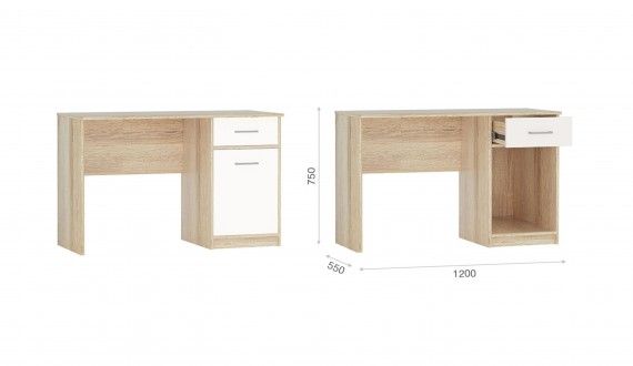 Стол письменный «Стелс» 120 1д. 1ящ. Дуб сонома/белый