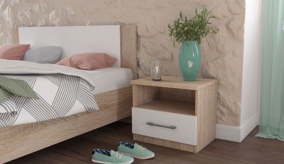 Тумба прикроватная «Аврора» (комплект 2шт.) Сонома/белый