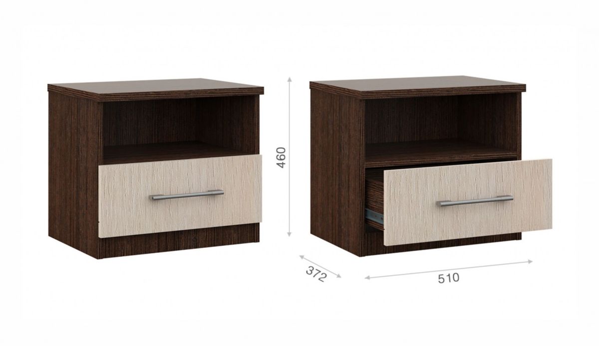 Тумба прикроватная «Аврора» (комплект 2шт.) Венге/дуб молочный