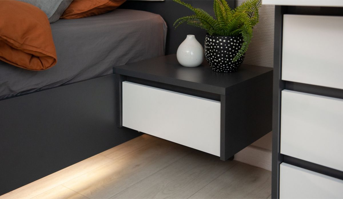 Тумба прикроватная «Мишель» 1ящ (2шт) Антрацит/белый жемчуг