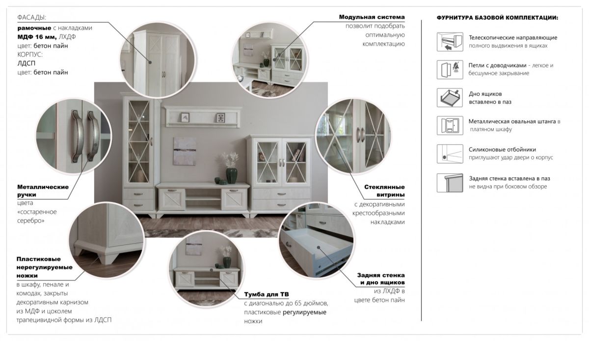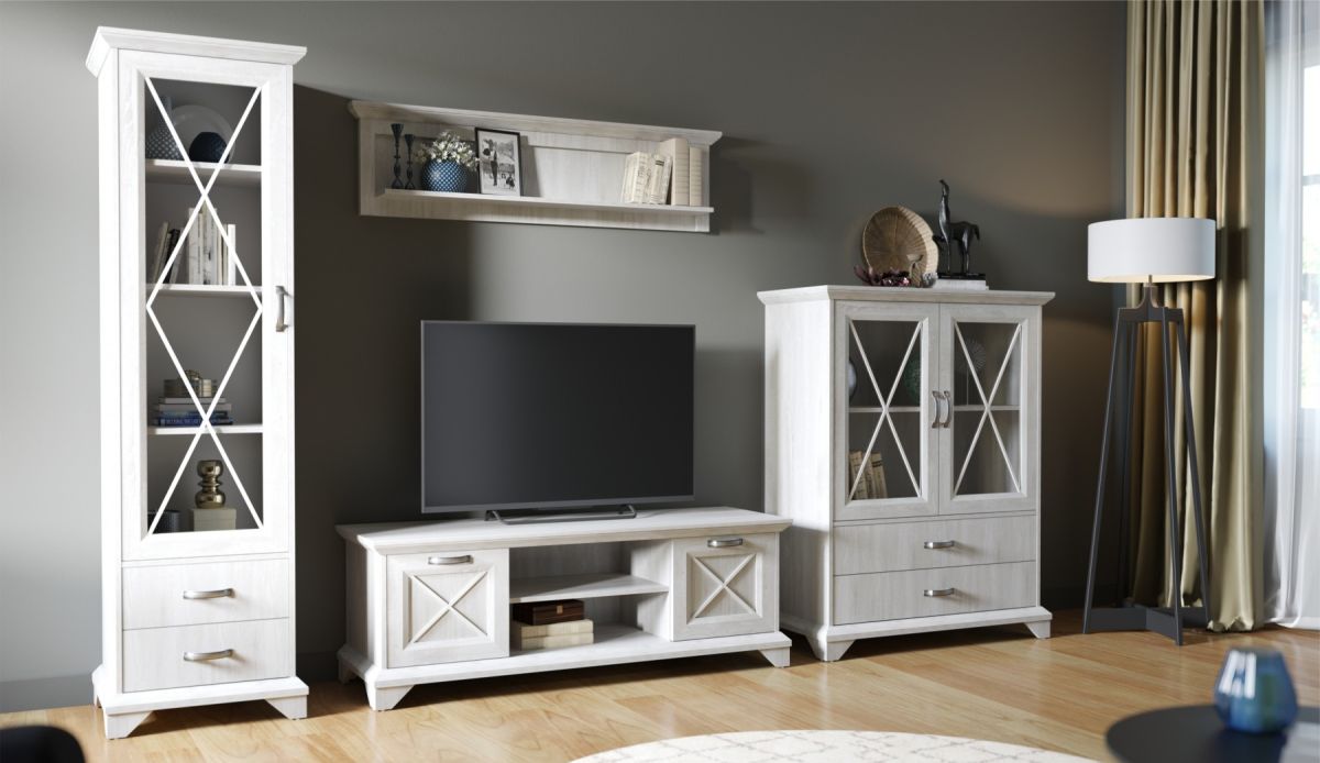 Тумба Лорена – функциональный элемент гостиной в стиле неоклассика, оснащена всем необходимым для удобства использования. Два открытых отделения и полки за закрытыми фасадами помогут разместить документы, медиа технику, пульты и другие необходимые вещи. Выполнена из экологичных материалов.