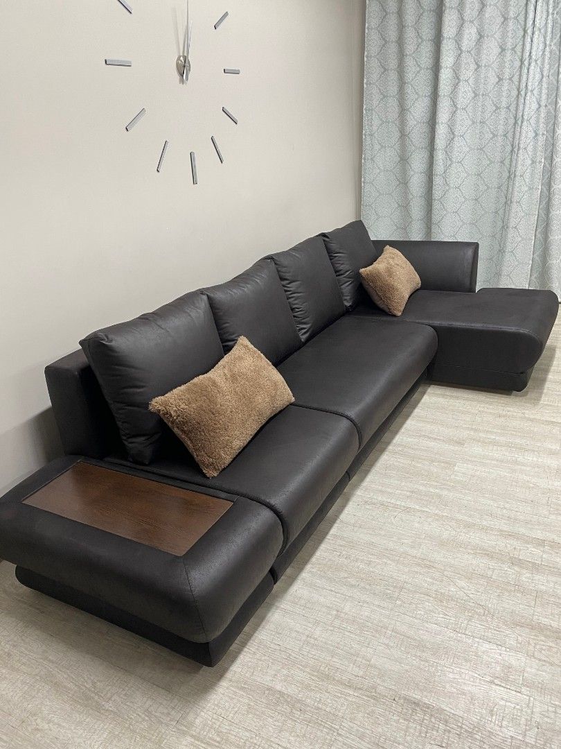 Большой, глубокий диван, трансформируемый элемент, для ежедневного сна, два больших короба, столик на подлокотнике